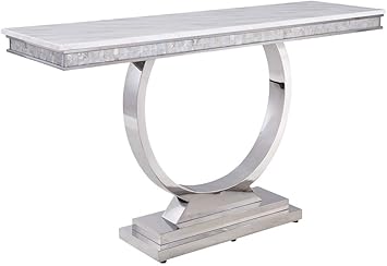 Amazon Com Acme Furniture Zander Sofa Table White Printed Faux Marble Mirrored Silver Finish Furniture Decor